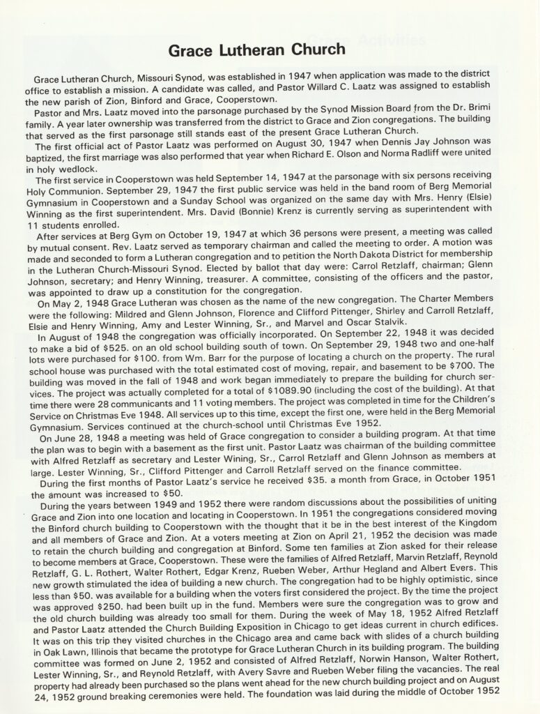 History of Grace Lutheran Church – Cooperstown December 1, 2024 | No Comments Categories: Uncategorized